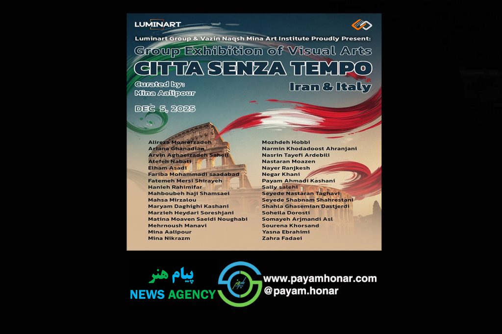 به گزارش پایگاه خبری و هنری پیام هنر، نمایشگاه گروهی هنرهای تجسمی و صنایع دستی ایران–ایتالیا با عنوان «شهر بیزمان» (Città Senza Tempo) روز ۱۴ آذر ۱۴۰۴ با همکاری گروه هنری لومینارت و مؤسسه فرهنگی هنری وزین نقش مینا افتتاح شد. این نمایشگاه با کیوریتوری مینا عالیپور و با حضور جمعی از هنرمندان فعال در حوزه هنرهای معاصر، آثار متنوعی را در بستری چندرسانهای پیش روی مخاطبان قرار داد.