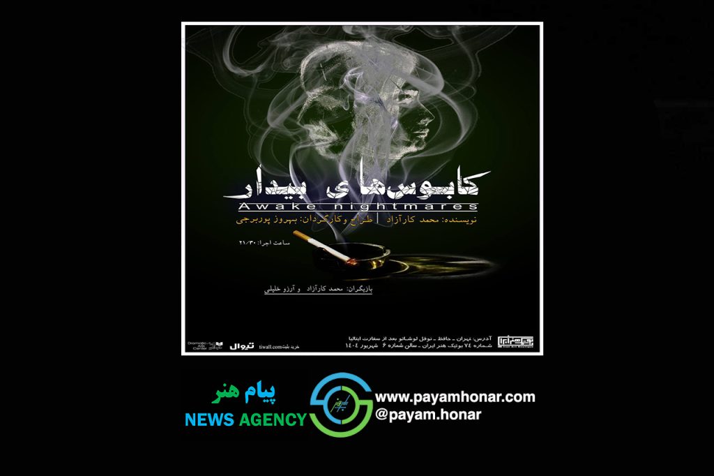 به گزارش پایگاه خبری و هنری پیام هنر و به نقل از روابط عمومی پروژه، نمایش «کابوسهای بیدار» در سبک اکسپرسیونیسم با متنی از محمد کارآزاد و کارگردانی بهروز پوربرجی از ۳ شهریور ۱۴۰۴ به مدت ۲ هفته، هرشب ساعت ۲۱:۳۰ در سالن شماره ۶ بوتیک هنر ایران روی صحنه خواهد رفت.