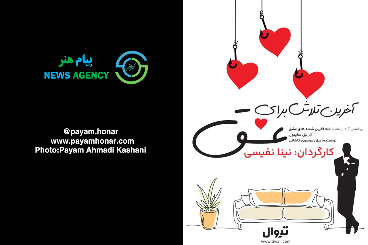 به گزارش پایگاه خبری و هنری پیام هنر، نمایش «آخرین تلاش برای عشق» به نویسندگی: بیژن موسوی کاشانی و کارگردانی: نینا نفیسی و با اجرای بهنام متعارفی، مریم قلهکی، فرزانه سکوتی، نینا نفیسی؛از تاریخ از ۲۰ تا ۳۰ آبانسال جاری به مدت ۵۵ دقیقه و در ساعت ۱۹:۰۰ در سالن استاد ذوالفقار فرهنگسرای ارسباران به روی صحنه رفت.